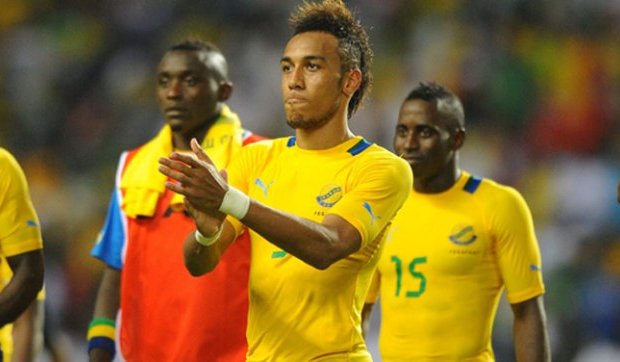 Le onze de départ du GABON : Ovono (cap.), Mouele, Ebanega, Ecuele-Manga, Moussono – Poko, Moulamba – N’Guema, Madinda, Mouloungui – P.-E. Aubameyang.
